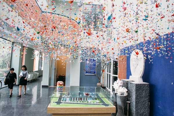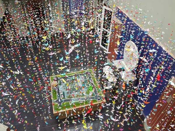 Hơn 10h, cổng trường mở! Theo như mong muốn của bọn trẻ, Bố sẽ vào sảnh để ngắm nhìn hơn 10 nghìn con hạc đang bay... bọn hạc như bọn học sinh vậy... ngóng Bố và đón Bố về!