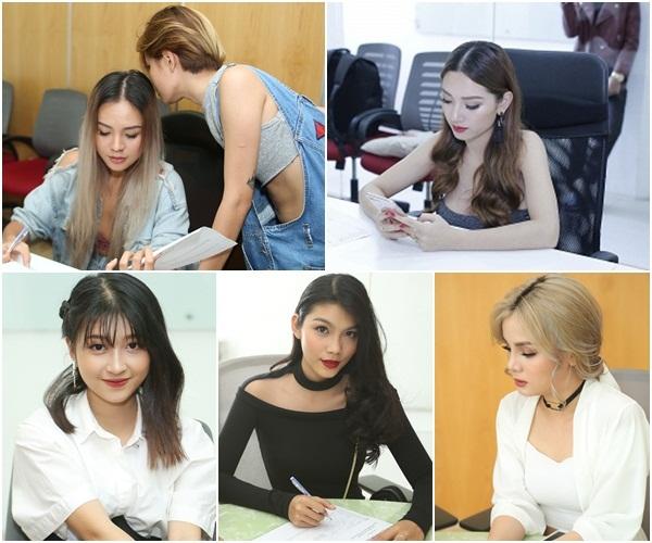 Một số gương mặt trong top 10 có mặt làm việc với BTC: Quỳnh Như, Mỹ Hằng, Kim Chi, Cẩm Tú và Trâm Anh (từ trên xuống dưới).