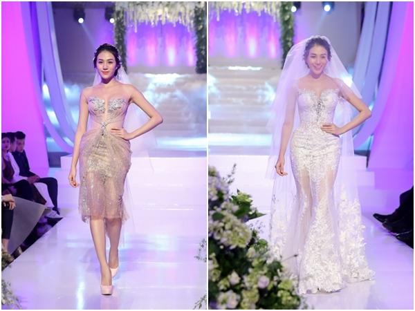 Các thí sinh bước qua thử thách sải bước catwalk trong những bộ trang phục váy cưới với 2 phần trang phục váy ngắn và dài, giám khảo là 30 vị khách mời đặc biệt.