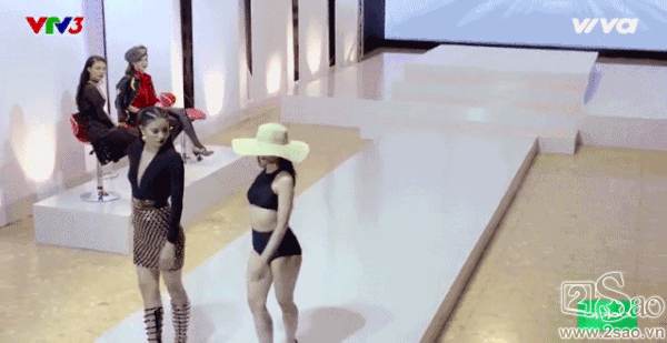 Thử thách thực tế đã khiến An Nguy bối rối khi lần đầu tiên mặc những bộ đồ ôm sát, khoe đường cong cơ thể và phải trình diễn trên một đôi giày cao gót An Nguy vẫn lọt thỏm giữa rừng thí sinh.