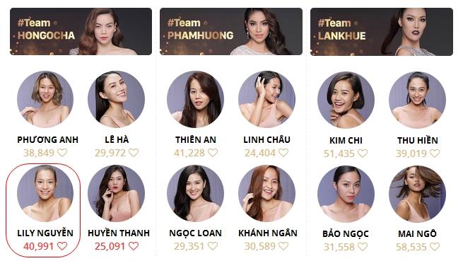 Tính từ thời điểm tối ngày 6/8 (trước khi lên sóng tập 7), lượng vote của Lilly chỉ dừng lại tại con số 40.991 lượt thì tới sáng ngày 8/8 con số này đã tăng lên thành 59.083 lượt. Còn gần một tháng nữa mới tới ngày diễn ra trận chiến quyết định, và Lilly Nguyễn hiện tại chỉ xếp sau Mai Ngô và Kim Chi của team Lan Khuê. Nếu số lượng bình chọn liên tục tăng đều như hiện tại thì Lilly Nguyễn sẽ vượt mặt Kim Chi trong ngày hôm nay.