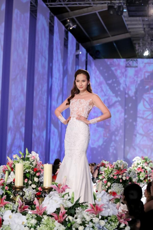 Tương tự, khi Ngọc Loan gặp sự cố bình hoa ngã ngay chính giữa bàn nhưng cô vẫn rất bản lĩnh vượt qua và tỏa sáng.