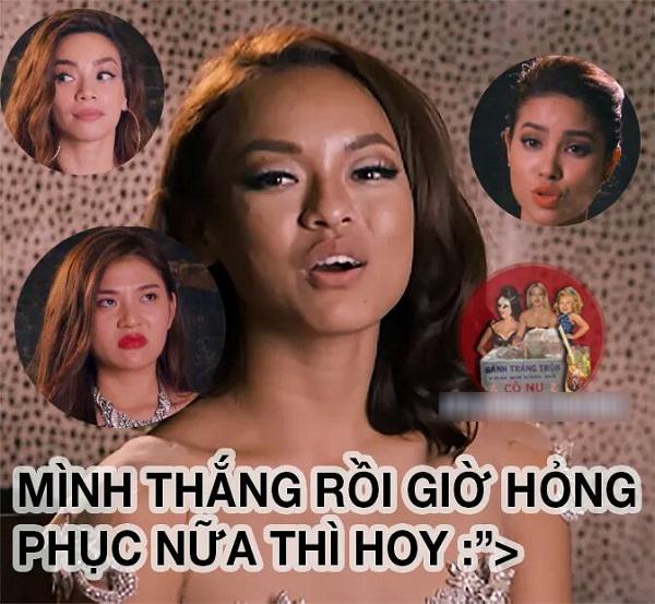 Phạm Hương tươi cười nói: "Hậu trường loại khắc nghiệt quá". Dân mạng cho rằng đây