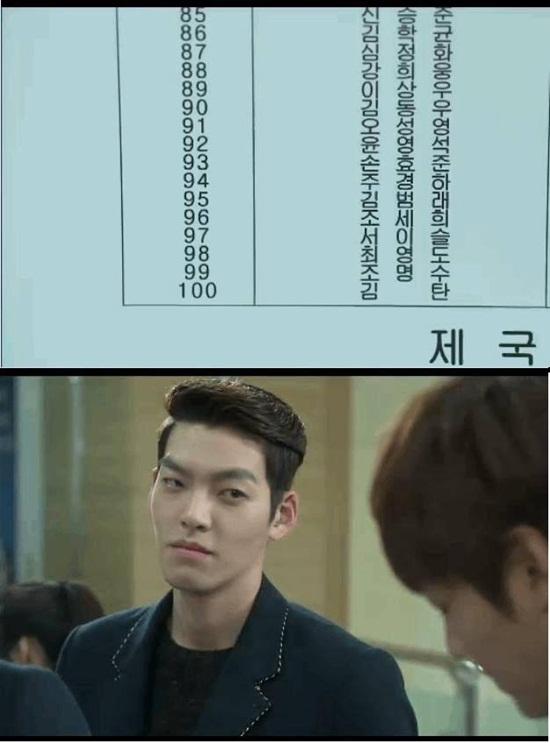 Kì thì diễn ra khác với Chan Young (Kang Min Hyuk), Eun Sang chăm chỉ làm bài thì “đôi bạn” một thủa kia chỉ ngồi ngán nhẩm vẽ hươu, vẽ vượn rồi tô chỉ một cột đáp án giống nhau. Và khi điểm thi được công bố rất bất ngờ khi vị trí của chàng Tan là số 1, chỉ có điều phải kèm thêm hai số 0 nữa là 100, đứng cuối cùng của bảng xếp hạng. Trong khi đó cậu bạn “vàng” với IQ 150 cũng không “kém” bao nhiêu khi dừng chân ở vị trí 98. Anh chàng “cầu nối” giữa hai chàng thừa kế kia hẳn là luôn đứng giữa khi xếp hạng 99, có lẽ đó là lí do mà Myung Soo ( Park Hyung Sik) rất vui mừng khi Tan trở về vì nhờ vậy mà cậu thoát danh hiệu “đội sổ”.