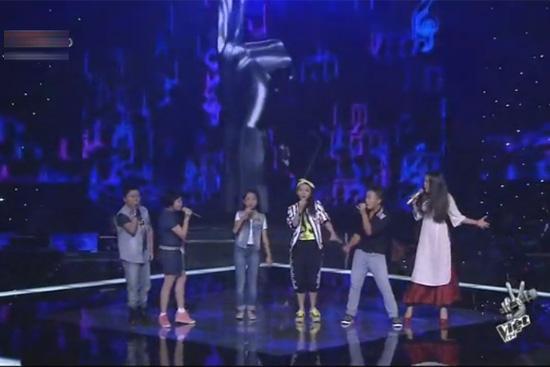 Sự xuất hiện và góp giọng giữa phần biểu diễn của ca sĩ Lưu Hương Giang cũng là điểm ấn tượng trong tiết mục thứ 6 của chung kết The Voice Kids 2013