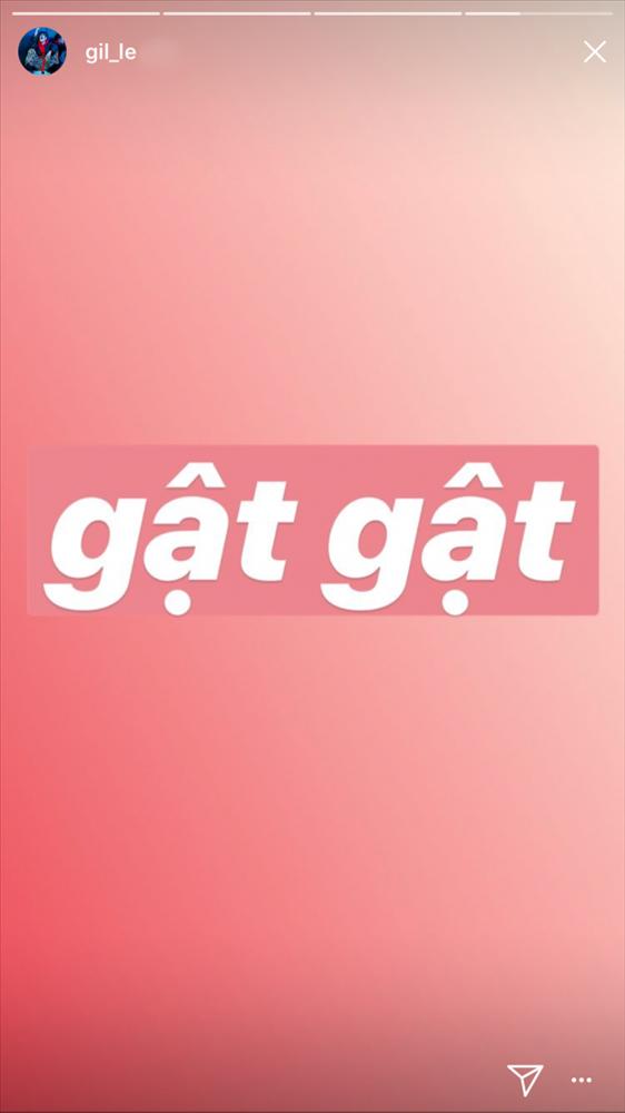 Ít phút sau, Instagram Story của Gil Lê bất ngờ xuất hiện bài đăng không đầu không cuối, chỉ ghi hai chữ “gật gật”. Ngay lập tức, người hâm mộ lập tức “xâu chuỗi” sự việc trên và cho rằng bài viết của Gil Lê chính là “lời hồi đáp” cho nữ ca sĩ sinh năm 1990.