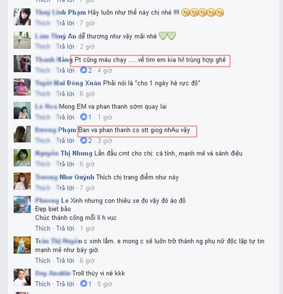 Ngày cuối tuần Midu xuống phố rực rỡ với môi đỏ, túi xách đỏ và giày đỏ cùng status: "Thứ bảy máu chảy về tim. Cô gái nhỏ - xách túi đỏ - mang giày đỏ - tô son đỏ. Cho một ngày rực rỡ." nhận được nhiều lời khen ngợi của mọi người. Ngay sau đó ít giờ, Phan Thành cũng chia sẻ hình ảnh đi cà phê cùng em trai Phan Hoàng và bạn với status y chang Midu đồng thời thả icon hình tim cực đáng yêu: "Thứ 7 máu chảy về đâu ?.... Tất nhiên là về tim rồi". Dòng status này nhanh chóng bị bạn bè của Phan Thành và Midu soi là sao giống nhau quá.