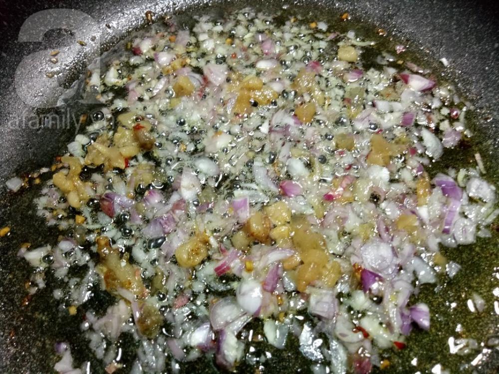 Đặt chảo lên bếp, cho mỡ heo vào chờ sôi rồi cho hành tím vào phi thơm.