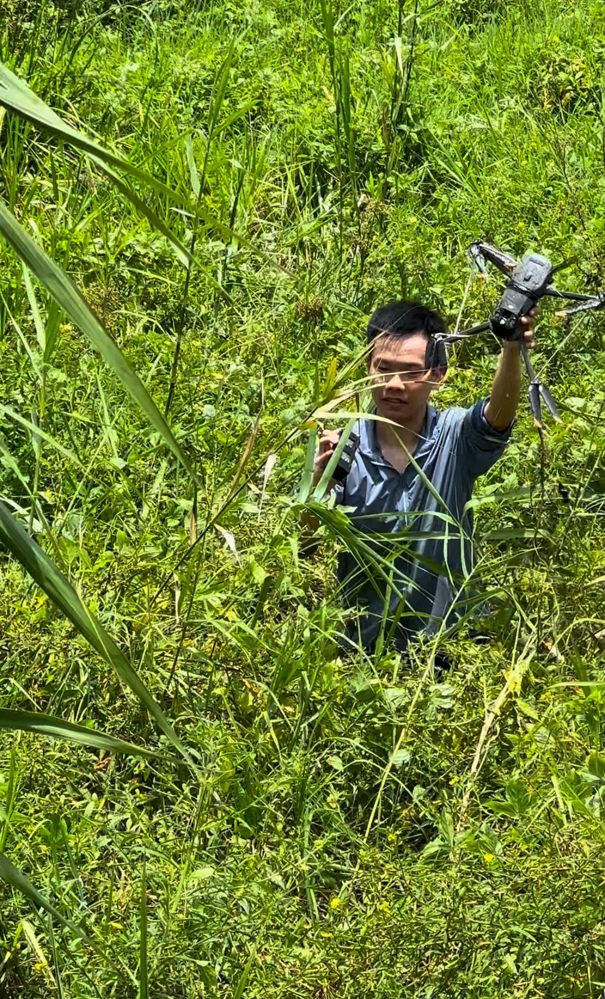 Ngay sau khi được chấp thuận, nhóm đã triển khai flycam để quét tìm, qua đó phát hiện được nhiều drone bị thất lạc. Hình ảnh do tài khoản A.T đăng tải cho thấy, nhiều thiết bị rơi xuống những vùng cỏ rậm, ao sâu hay khu vực bùn lầy – nơi rất khó quan sát bằng mắt thường.