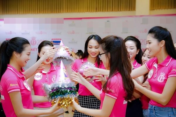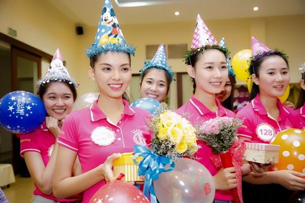 Ông Lê Xuân Sơn và Bà Phạm Kim Dung tận tay trao bánh sinh nhật và hai phần quà nhỏ cho hai người đẹp. Thuỳ Linh không quên gửi lời cám ơn chân thành đến “đại gia đình” Hoa hậu Việt Nam tạo cho cô một niềm vui bất ngờ. Riêng Thu Thảo cho biết, dù năm nay sinh nhật không có gia đình bên cạnh nhưng cô rất vui khi đón tuổi mới bên cạnh cô chú ban tổ chức và các chị em thí sinh. Trong lúc chia sẻ, Thu Thảo xúc động đến rưng rưng nước mắt.