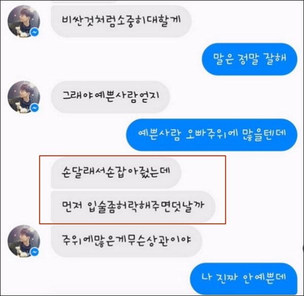 Cụ thể, vào ngày 7/5 vừa qua, trên các diễn đàn online bỗng nhiên tràn ngập nội dung tin nhắn gạ tình của Ha Min Ho với không chỉ một mà nhiều fan nữ của mình. Anh chàng sử dụng những lời đường mật để thuyết phục các cô gái gặp gỡ mình một cách riêng tư, thậm chí còn có những câu từ nhạy cảm để ám chỉ hành vi quan hệ tình dục. Ha Min Ho cũng liên tục dặn dò họ phải giữ bí mật về những tin nhắn này, điều đó càng cho thấy động cơ không trong sáng của thí sinh "Produce 101".