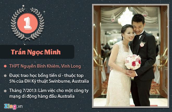 Trần Ngọc Minh - Quán quân "Đường lên đỉnh Olympia" mùa đầu tiên - tốt nghiệp ĐH Kỹ thuật Swinburne (Australia) và được trao học bổng từ cử nhân lên tiến sĩ khi nằm trong top 5% xuất sắc của trường. Tháng 7/2013, chị làm việc cho một công ty nhà mạng di động hàng đầu tại Australia. Ngọc Minh lập gia đình năm 2013 và khá kín tiếng về cuộc sống riêng. Ảnh: Lee Mew.