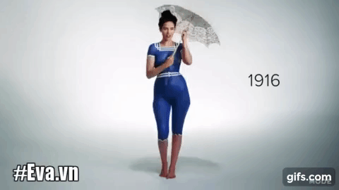 Năm 1916 kiểu đồ bơi còn khá kín đáo và không khác gì nhiều với trang phục