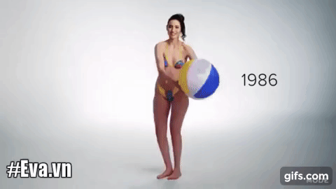 Năm 1986 đồ bơi hoạ tiết bắt mắt với phần áo ngực theo kiểu microkini ra mắt.