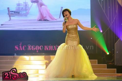 Trương Ngọc Ánh thướt tha với bộ váy hồng sánh đôi trong vai trò MC cùng Quyền Linh. Hình ảnh của cặp đôi này khiến khán giả nhớ đến bộ phim đình đám ngày xưa “Đồng tiền xương máu”