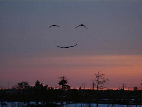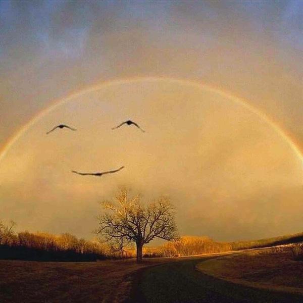 2. Một cảnh tượng hiếm thấy khi cầu vồng, cánh chim tạo nên khuôn mặt giống như ông mặt trời đang nở nụ cười hiền từ chào cả thế giới.