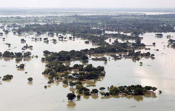 Ảnh chụp từ trên cao một ngôi làng bị ngập chìm trong biển nước lũ ở vùng ngoại ô của Allahabad, Ấn Độ, ngày 24/8. Mưa lớn những ngày qua ở Ấn Độ đã khiến hơn 300 người dân thiệt mạng, hàng trăm nghìn người khác phải sơ tán. Ảnh: Reuters