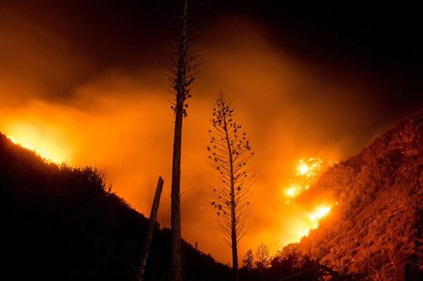Lửa cháy ngùn ngụt tại khu rừng gần Wrightwood, California , ngày 19/8. Ảnh: AP