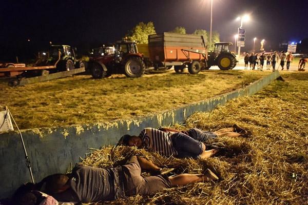 Những người nông dân Pháp ngủ trên rơm trong đêm biểu tình đòi công bằng về giá sữa vùng Tây Bắc nước này ngày 25/8. Ảnh: Getty