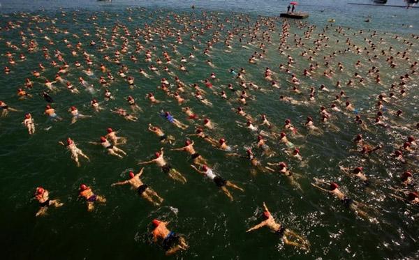 Người dân trong một sự kiện bơi được tổ chức thường niên tại hồ Zurich, Thụy Sĩ. Ảnh: Reuters