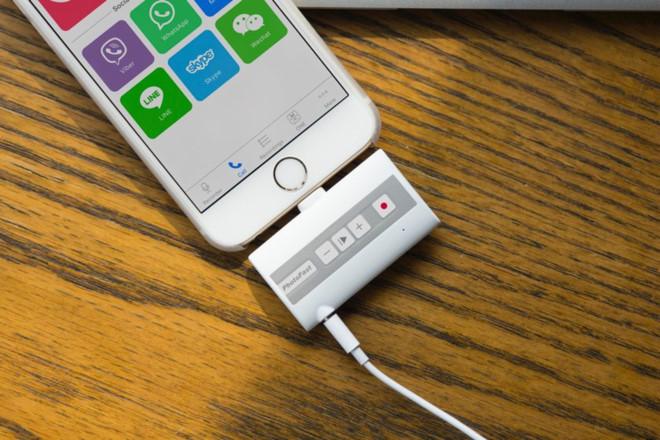 Công ty PhotoFast vừa tạo ra thiết bị Call Recorder. Thiết bị ghi âm cuộc gọi này được gắn trực tiếp vào cổng Lighting của iPhone có khả năng ghi âm mọi cuộc gọi trên ứng dụng bên thứ 3 như Skype, Facebook Messenger, WhatsApp, Line, Viber, và WeChat.