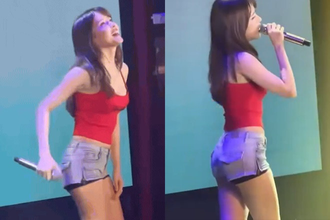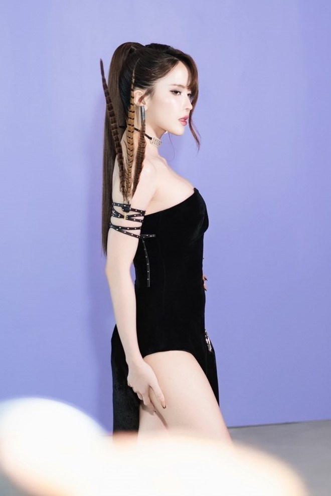 Xuất hiện ở event, Thiều Bảo Trâm cũng nhanh chóng gây chú ý khi diện trang phục táo bạo. Nữ ca sĩ diện chiếc đầm đen cúp ngực có phần xẻ váy cao tít khoe đôi chân "kiếm nhật" dài thẳng tắp.
