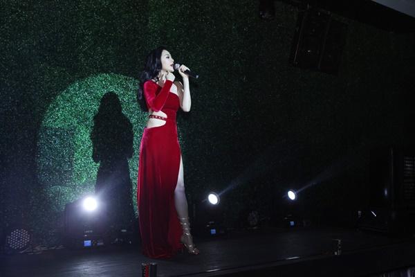 Thiều Bảo Trang trở thành tâm điểm của mọi sự chú ý khi diện chiếc đầm đỏ