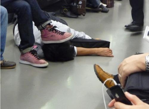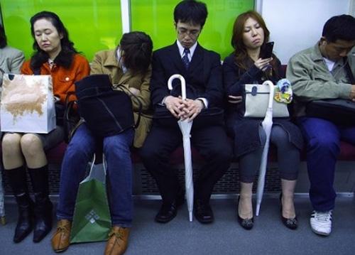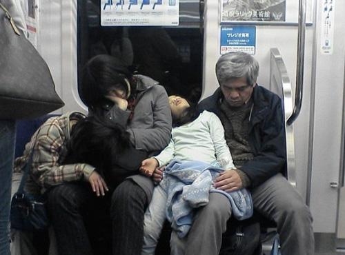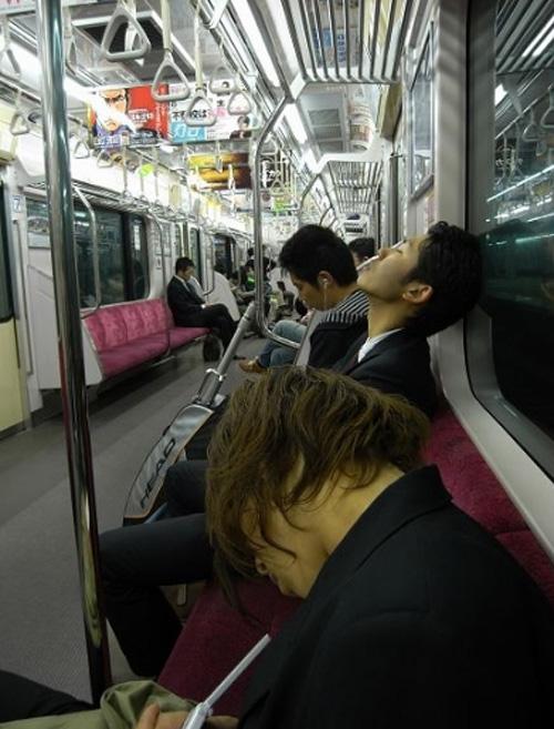 Không còn ghế, phải ngủ vạ vật thế này đây.