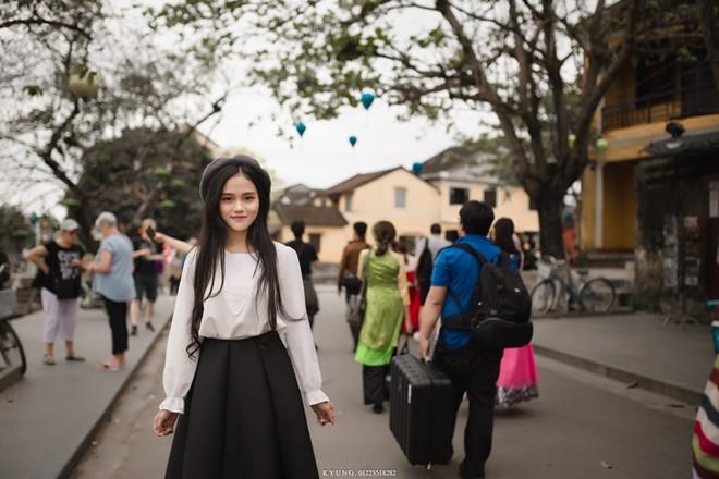 Tường Vi sở hữu vẻ đẹp đặc trưng của con gái Việt Nam với gương mặt trái xoan, đôi mắt to, nụ cười tươi cùng mái tóc dài. Dù góc chụp nghiêng hay chính diện, thiếu nữ Đà Nẵng vẫn toát lên vẻ dịu dàng, duyên dáng.