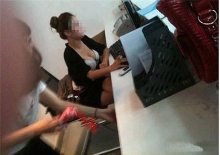 Cô gái mặc áo táo bạo bên bàn làm việc (ảnh minh họa)