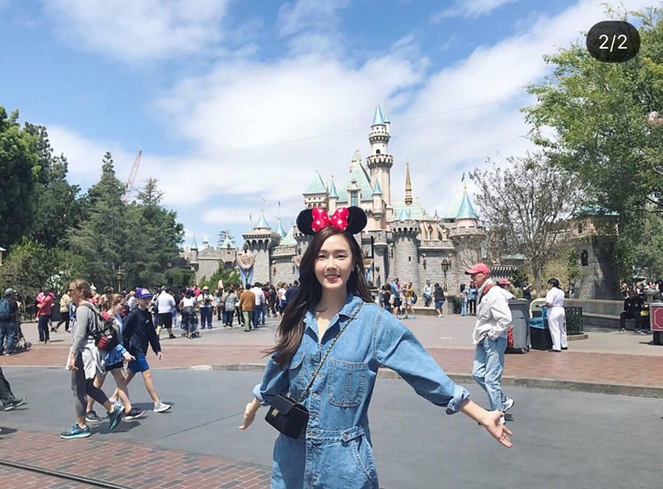 Trong khi đó, Jessica nhí nhảnh cùng chiếc bờm tai mickey kết hợp cùng jumpsuit chất liệu denim.