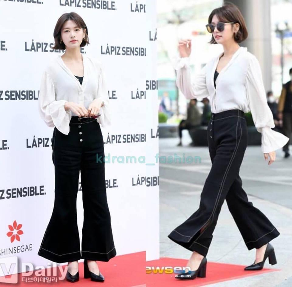 Xuất hiện tại sự kiện mới đây, Jung So Min đi đầu xu hướng cùng áo tay bồng mix quần ống loe thời thượng từ nhà mốt Rachel Cox.