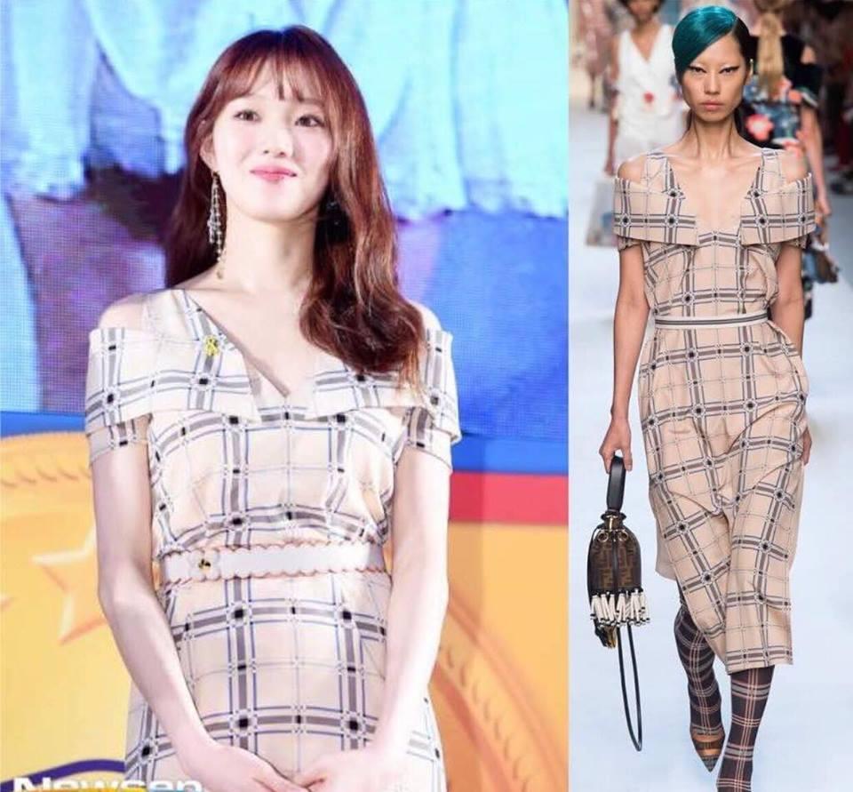 "Tiên nữ cử tạ" Lee Sung Kyung khoe vẻ đẹp nữ tính trong thiết kế váy kẻ caro từ thương hiệu Fendi.