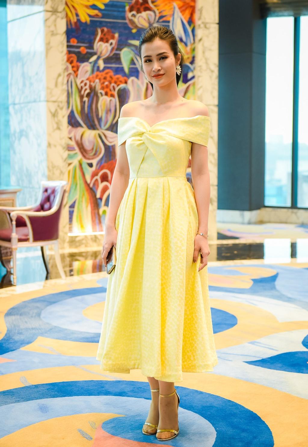 Năm nay, sắc vàng "lên hương", Linh Nga duyên dáng với thiết kế váy suông cánh bướm của Đỗ Mạnh Cường.
