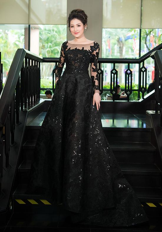 Á hậu Tú Anh duyên dáng không kém khi diện đầm đen thướt tha, bắt sáng ấn tượng.