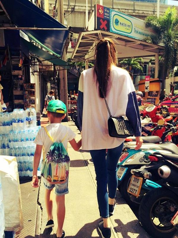 áo khá bình dân nhưng Subeo vẫn "chất" như thường vì có mẹ rất giỏi phối đồ.