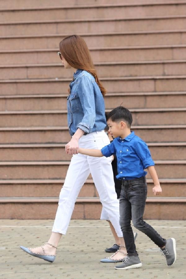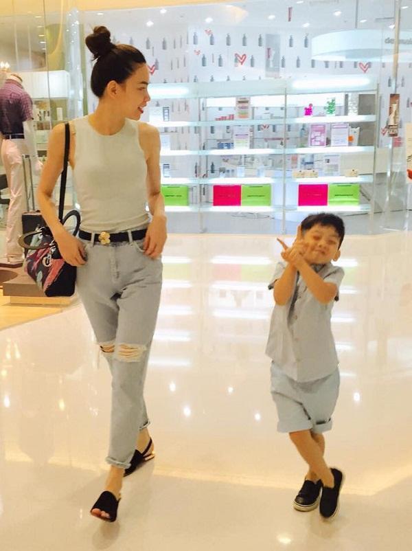 Áo trắng, quần jean, giày slip on đôi đã khiến hai mẹ con Hà Hồ nổi bật trên phố.