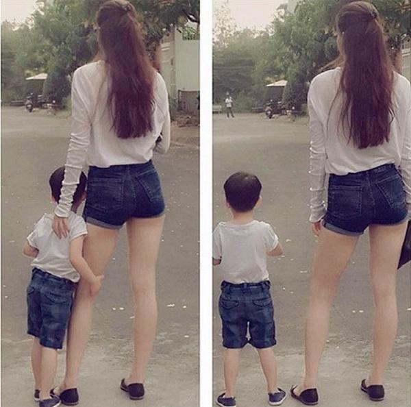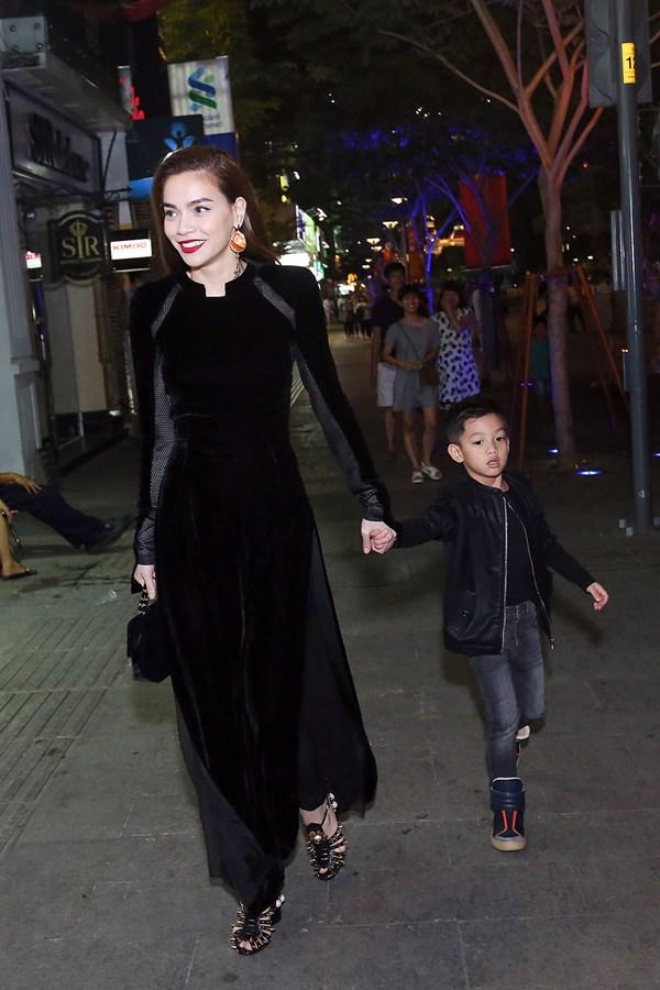 thời trang "sang chảnh" như thế này. Trong khi mẹ Hà Hồ nền nã với áo dài đen thì