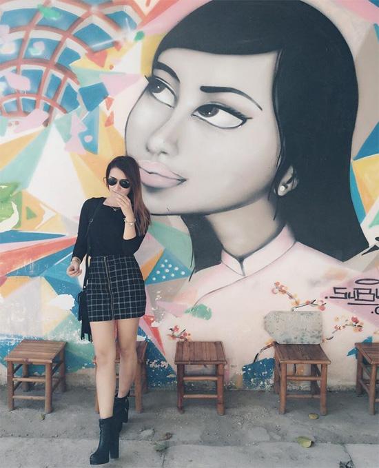 Dáng váy ngắn kết hợp cùng boots cá tính thường xuyên được Kiều My sử dụng