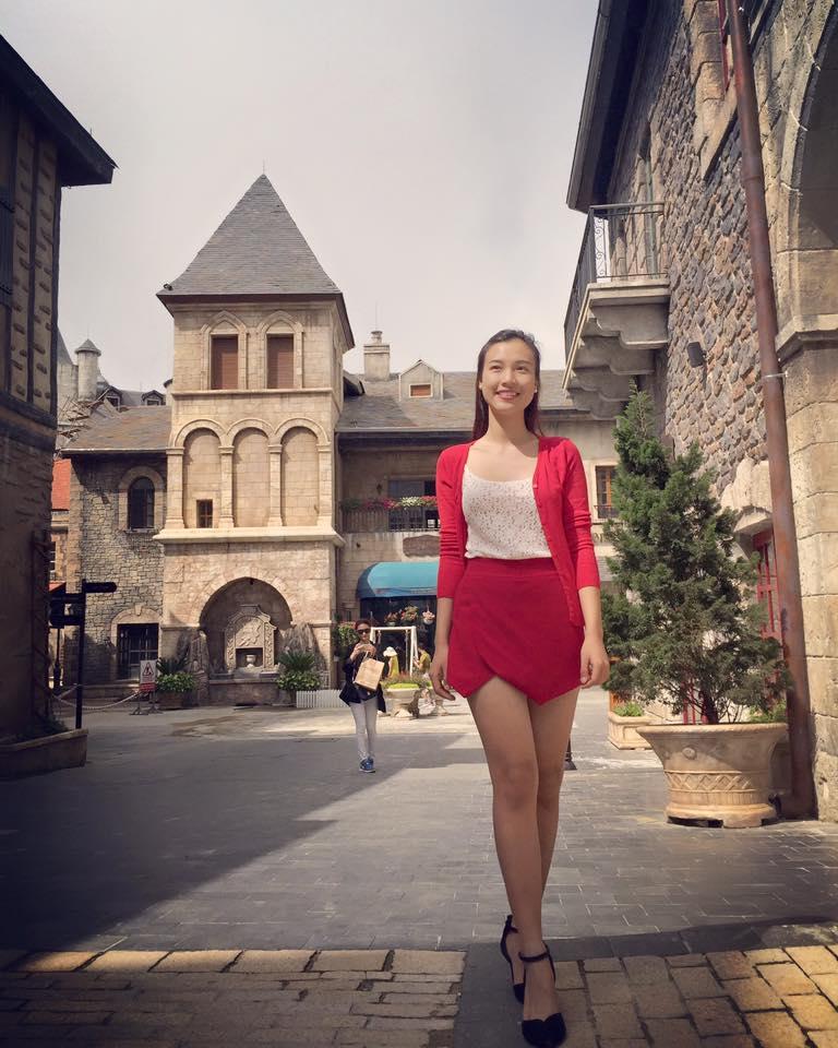 Cách kết hợp tông màu đỏ với áo mặc bên trong là màu trắng như Hoàng Oanh