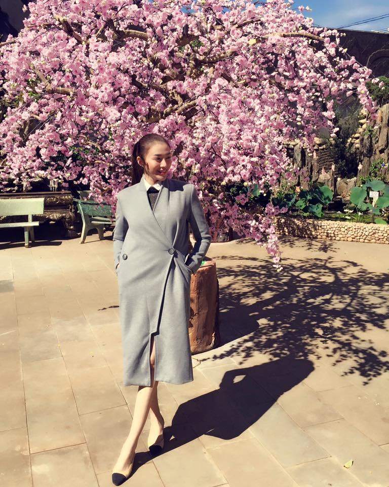 Sở hữu chiều cao lý tưởng Lê Hà tự tin khoe dáng với áo khoác dáng dài và giày
