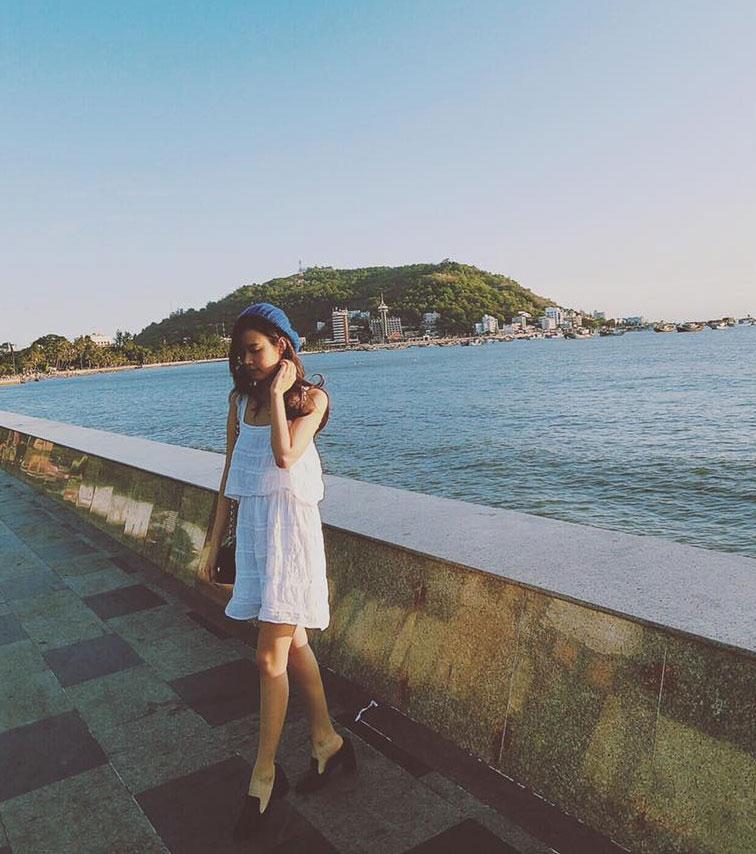 Midu chọn style khá đơn giản, nhẹ nhàng là váy thô mềm tông trắng nhã nhặn thiết