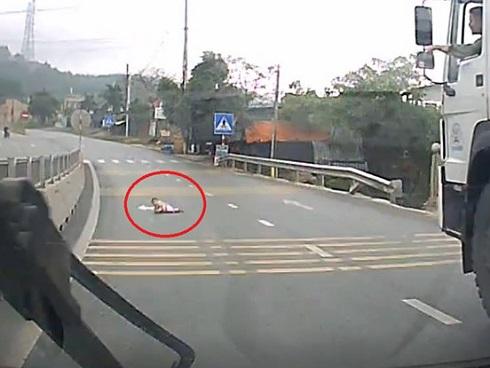 Đoạn clip ghi lại hình ảnh một cháu bé bò ngang qua quốc lộ giữa lúc nhiều phương tiện đang tham gia giao thông.