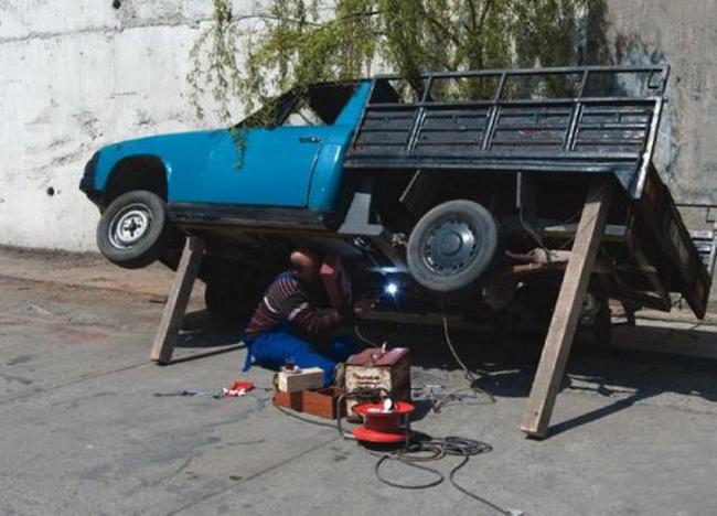 Nghiêng xe làm việc cho đỡ nắng thôi mà.