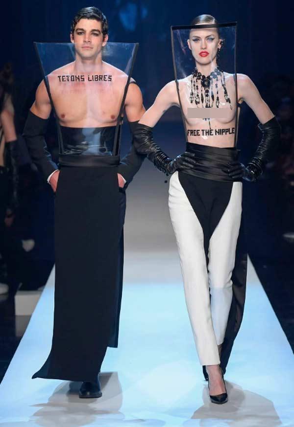 Lần này Jean Paul Gaultier đem tới tuần thời trang xa xỉ bộ sưu tập đồ sộ gồm 70 mẫu thiết kế với chủ đề chủ đạo "Free the nipple – giải phóng nhũ hoa".