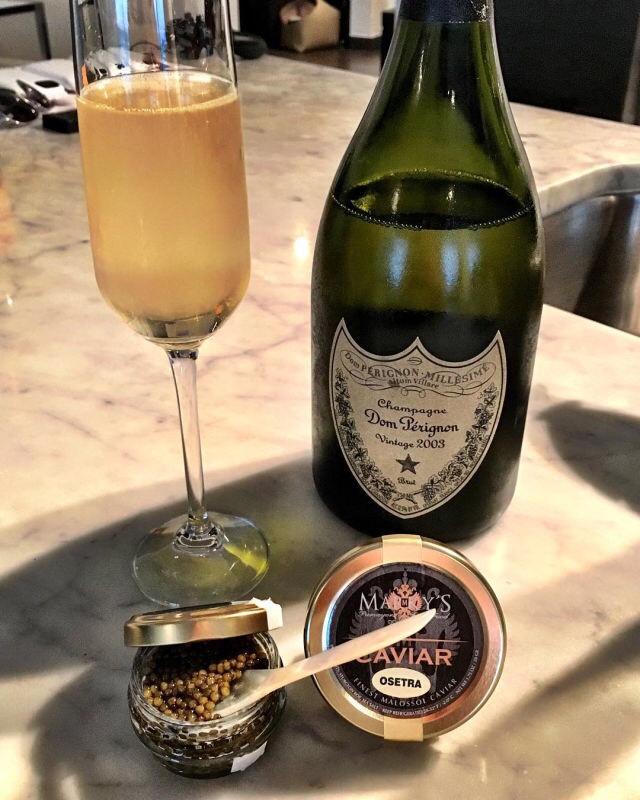 Những bữa ăn của giới siêu giàu đương nhiên không thể thiếu những chai vang siêu cấp và món trứng cá tầm đen Caviar.