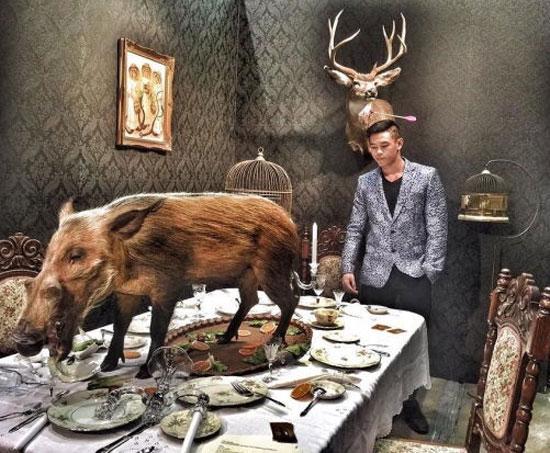 Tỷ phú trẻ Arnold Putra chơi trội với bữa cốt lết có cả con lợn rừng còn sống trên bàn tiệc