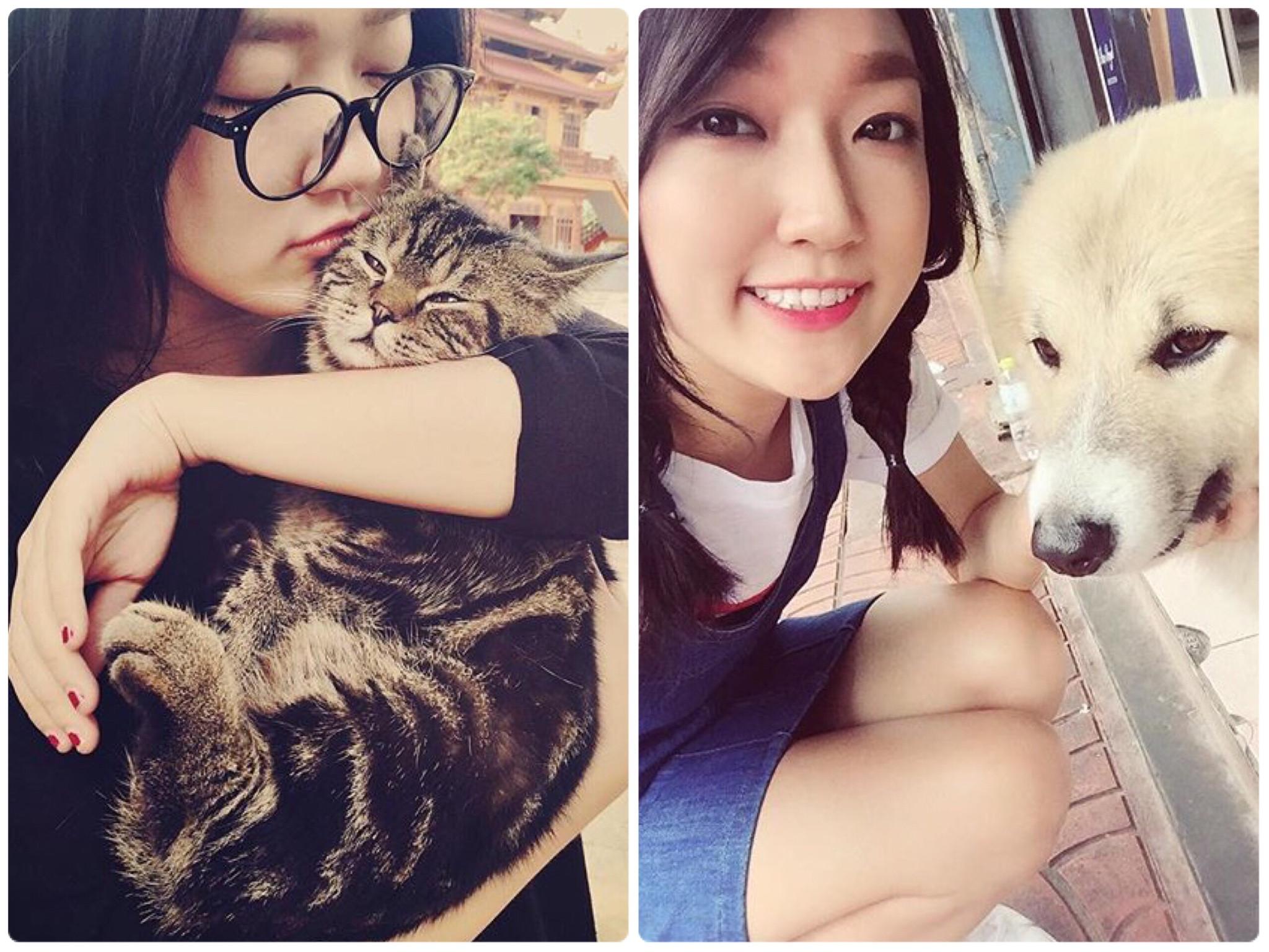 Hotgirl Hạt mít cũng được biết đến là người cực kỳ yêu động vật khi nuôi một lúc cả 2