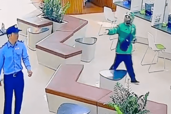 Theo camera ghi lại, hai người đàn ông cầm vật nghi súng ngắn, hô to: “Đứng yên không tao bắn”. Một người mang ba lô, mở từng hộc tủ lấy tiền ném ra sảnh để đồng bọn nhặt bỏ vào túi. Quá trình cướp diễn ra trong vòng 2 phút.