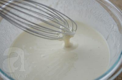 nước lạnh khuấy đều. (không nên khuấy hỗn hợp quá kỹ vì sẽ làm bánh bị dai).